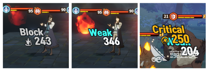 每次玩家释放技能进行个攻击时,会有一个攻击判定,会有【暴击】、【有效的属性伤害】、【免伤】的效果。