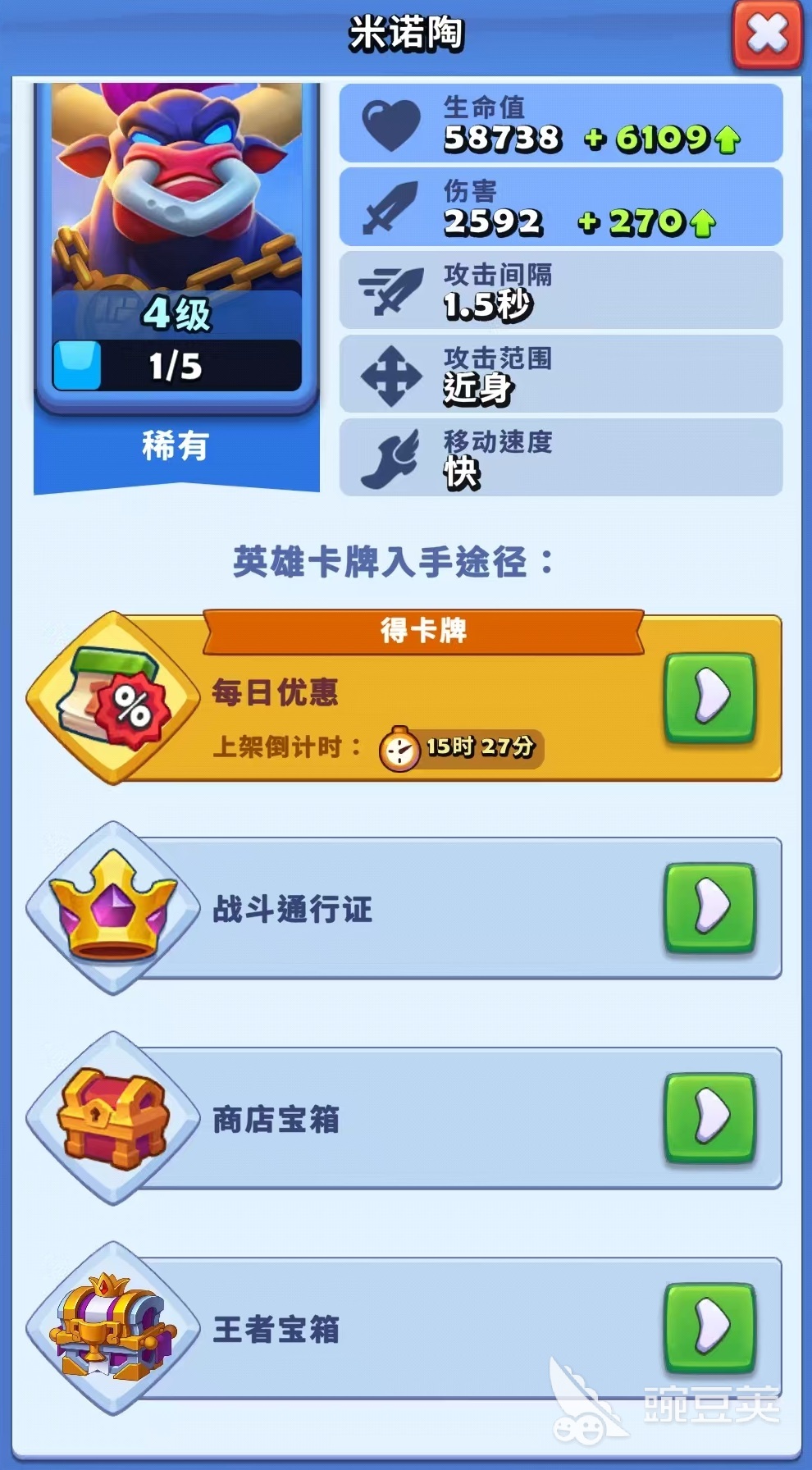 米诺陶是属于游戏中自然阵营中的稀有品质卡牌,可能很多玩家认为稀有品质卡牌属性比较差,其实并非如此,每一张牌只要应用的好都可以发挥出威力。米诺陶作为大家在游戏中第1个遇到的冲锋型重装战士,在前期的战斗中有着很大的帮助。技能蛮力冲撞,通过蓄力冲刺将路径上所有的敌人撞飞,并造成短暂眩晕,升级之后可以提升冲刺的距离和伤害范围。技能坚定如山,越多敌人来围攻米诺陶,越可以不动如山,受到的伤害降低恢复提升。