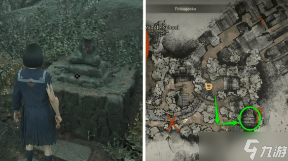 第一尊地藏雕像位于雏子家附近。从她家下山时,在一个红色邮箱旁的房屋外侧就能找到。需要供奉的褪色新娘娃娃藏在戎之丘地区一个邻居家中:先在住宅楼上找到"寻宝游戏钥匙",再用它打开一楼厨房的宝箱获取娃娃。