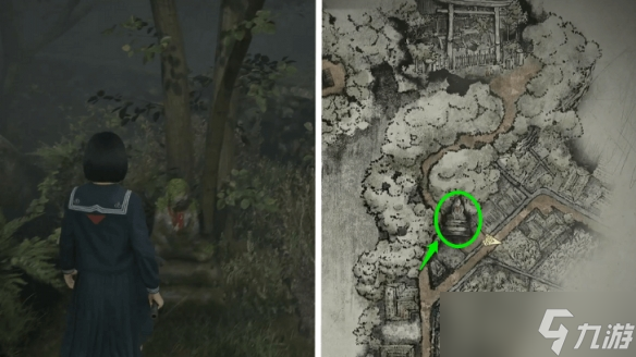 第二尊地藏雕像坐落在通往千年杉神社的小径旁。与修在戎之丘田地会合后即可到达此区域。所需的生锈烧瓶就在千年杉神社地面上,位于雕像附近,可直接拾取。
