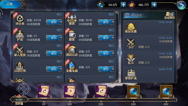 《圣痕觉醒》在内容玩法上采用了MMORPG的任务系统,并且融合了线性化的剧情关卡副本贯穿游戏的主线内容。多元化的活动搭配丰富的资源副本足以满足玩家的日常游玩。