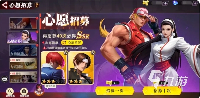 进入心愿卡池阶段后,建议优先抽取八神庵与草薙京。草薙京凭借群体伤害技能搭配燃烧效果,可持续压制敌方全体单位;八神庵则以极致单体爆发著称,且具备追击机制——击败一名敌人后可立即发起下一轮攻击,形成连锁打击。两者协同作战时,能迅速削减对手人数,建立人数优势,极大增强战场控制力。