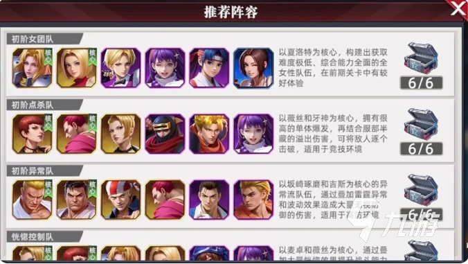 熟悉各职业特性及代表角色的技能机制,有助于构建更具战术深度的队伍组合。官方为新手提供了十余套推荐阵容,初期建议优先选择“初阶女团”阵容,该组合由易获取、升星快的角色构成,且全员羁绊可完全激活,显著提升前期推图效率与战斗稳定性。