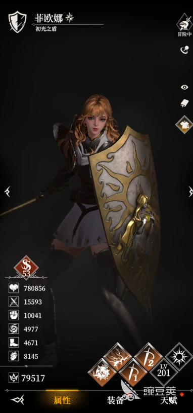 菲欧娜的“弹反”能让格挡率加10%,格挡的时候减少30%受到的伤害,每使用格挡5次就会触发一次弹反,对攻击的人造成5秒的眩晕,她的“坚守”会在首次生命值低于40%的时候进入到坚守状态,在这个期间自身能获得1000%力量值的护盾,格挡几率也会提升20%,但是无法用普攻和能量技,也不能移动持续8秒,她的“猛击”会对目标打出物理输出,她的能量技会汇聚力量对范围内敌人造成伤害,以及持续3秒的眩晕。