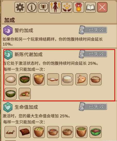 莫慌!在个人加成中,食用目标食物激活【新陈代谢】BUFF