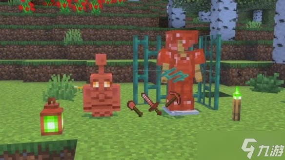 同时,游戏中会新增一整套铜制工具与装备,性能介于石制和铁制之间,在游戏初期十分实用。多种铜制装饰性方块,如“铜灯笼”等也将加入,因氧化程度不同呈现多样色调,为建筑增添别样色彩。