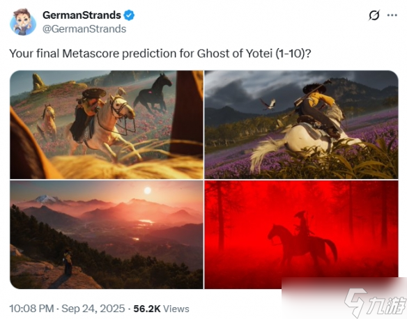 《羊蹄山之魂》将在10月2日发售,媒体评分将在今晚9点解禁。近日,博主@GermanStrands本在社交媒体发起本作最终Metascore评分预测(1-10分),统计大量心目中游戏的评分,一起来看下吧。