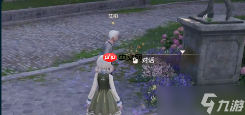 第五步:在此位置会发现一座雕像,旁边站着NPC艾柏,与其对话并接受他交付的委托任务。