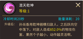 以自身为中心进行360度的攻击,当然还是利用手中的乾坤圈来大范围攻击,但缺点是缺少距离优势,需要调整好站位来释放。