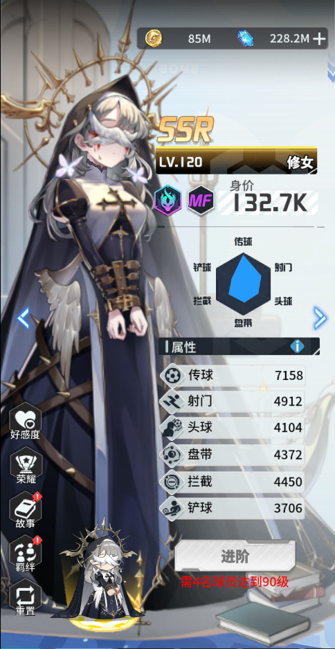 ️拦截:影响球员战术防御和争球的成功率,与敌方前锋进攻属性对冲,数值越高,夺球几率越大,是中场第二培养重心。
