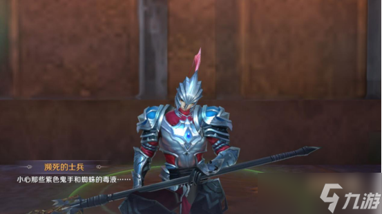 不要忽略门口奄奄一息的士兵,点击交谈士兵会给我们一些提示“小心紫色鬼手和蜘蛛的毒液”,这正是后续我们会遇到的挑战。