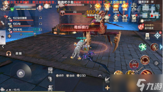 然后,我们会遇到第一个BOSS“鬼面狼蛛”。在打这个BOSS时,妖兽一定要冲上前去持续使用技能吸引鬼面狼蛛,为队友创造良好的输出环境,即在鬼面狼蛛的身后持续输出。