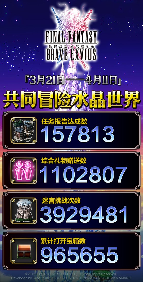这一次,冒险者们赠予礼物数达到1102087次,真挚的友情弥散在新水晶世界里。