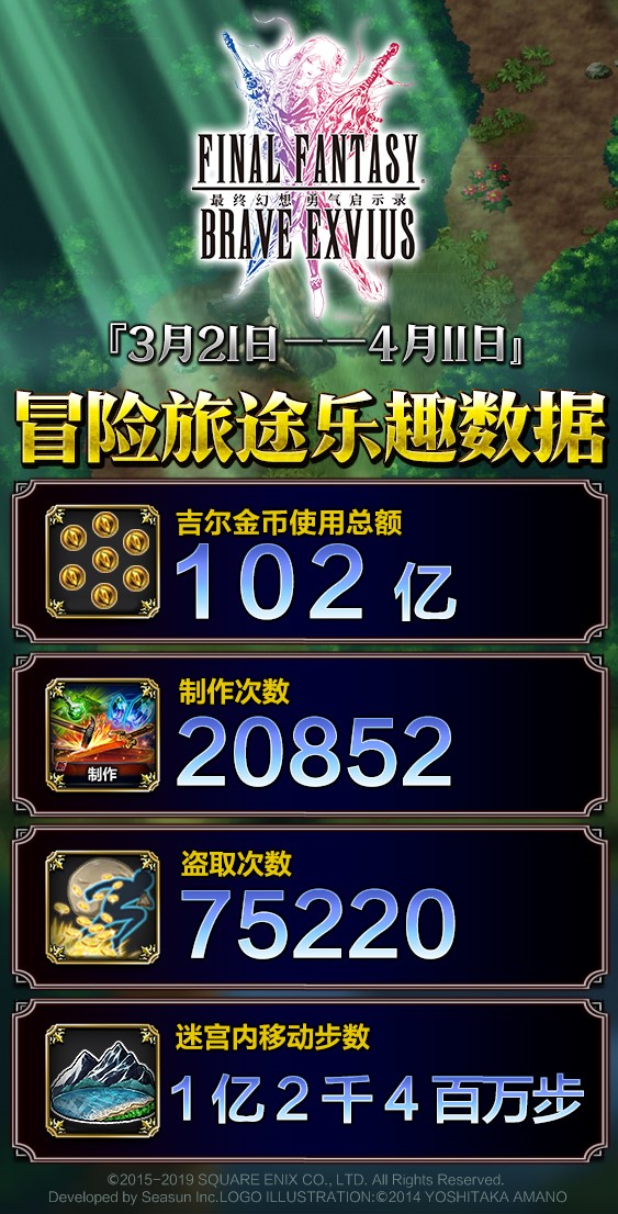 每一位队长,每一段冒险,每一个故事,每一场战斗,在不长的22天时间内,汇聚成一个又一个有趣的数字。首测冒险数据现已出炉,让我们感受最终幻想的极致魅力!!
