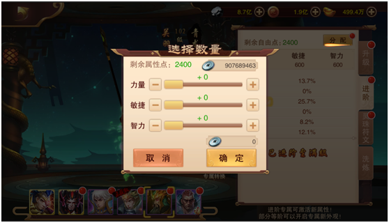 作为一款手游卡牌游戏,却有着很多端游角色扮演游戏都没有的自由养成系统。游戏内有多个系统都能获得自由属性点,可以自由分配给力量、敏捷或者智力。
