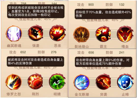 武将的天赋各不相同,有的适合放前排,有的适合对位速度快的武将,有的适合打敌方血少的武将,有的需要被保护,玩家需要根据武将的特色,搭配不同的阵容。