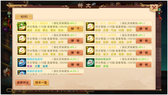 【符文系统,不同符文有着不同的属性和最终特殊技能】
