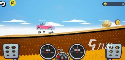 登山赛车主打横版登山驾驶体验,玩家操控不同类型的车辆在高低起伏的地形上行驶,核心目标是尽可能跑更远的距离,同时收集沿途的金币,车辆类型很丰富,从普通的小汽车到卡车、越野车,每种车的行驶手感和爬坡能力都不一样,有的车适合在平缓地形加速,有的车则擅长应对陡峭的山坡。