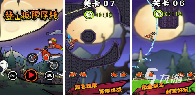 登山极限摩托将登山场景与摩托车驾驶结合,玩家操控摩托车在各种险峻的山地地形上行驶,相比汽车,摩托车更灵活但也更容易失去平衡,对操作要求更高,游戏加入了极限动作系统,玩家在行驶过程中可以完成跳跃、腾空翻转等动作,成功完成动作可以获得额外的分数,分数可以用来升级摩托车。