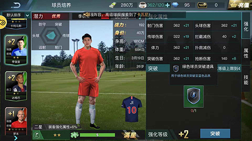 虽然游戏中的每位球员都可以通过强化和升星来提升数值,但一定会有玩家担心:低级球员强化后的数值依然不如高级球员,如果没有S级和SS级球员,我是不是就赢不了了?答案当然是否定的。《决胜足球》特别为玩家们准备了独一无二的球员突破系统,只要将球员强化至当前的最高级别,便可进行突破,而突破后的球员不但各项属性获得大幅提升,也将同时提升球员等级,这意味着,即使是最低的C级球员,也可以通过不断突破,成长为SS级足坛巨星。而突破所需的道具只需完成大师联赛便可进行兑换。可以说,在首发阵容中排出11位SS级超级巨星这样的盛况,对于《决胜足球》玩家来说绝非难以企及的梦想,即使初期阵容不利,也能通过球员的培养与突破,打造出一支名副其实的超级宇宙队,与其他玩家一起争夺最强冠军的荣誉。