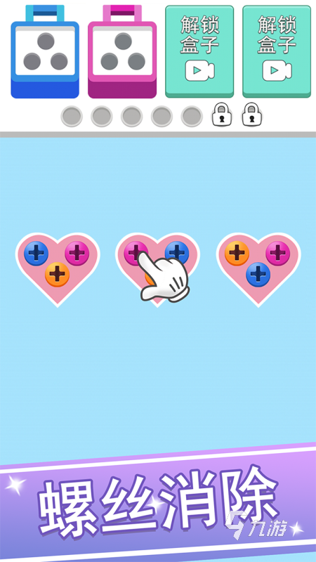 创新类型的消除解压的感受倒是可以从这里被你们很好的见到,游戏中我们可以感受到非常传统的消除玩法的方式,只需要在这里点击螺丝钉,只能是最外侧的才可以将它们拆卸下来,并且对应着下方同样颜色的盒子才可以,《拆螺丝不能停》这款手游内还会有各种辅助道具可以去使用。