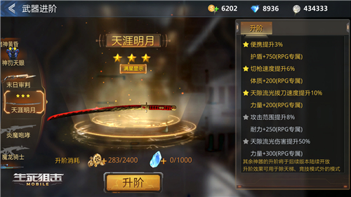作为一款英雄级近战武器,天涯明月的技能效果自然也不会让大家失望。自带的天隙流光技能,使得当持有天涯明月时,刀战模式下击杀一人后即可触发拔刀姿态,可以快速出刀与收刀。而在冒险模式下,使用技能后可以直接进入拔刀姿态,每次拔刀均可发射一枚弧形刀光,完成对前方飞行路径的目标收割。不仅如此,当天涯明月进阶到五星时,专属技能天隙流光将提升50%的伤害,大大增加该近战在冒险模式的清怪能力。