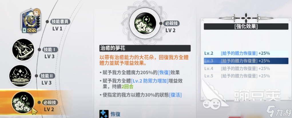 并且使用大招的时候她恢复的数值是非常高的,同时还会对一些血量比较低的队员再次带来一些额外的治疗效果,所以如果是大家遇到即将团灭的情况下,使用这个技能是可以达到很强的拉回效果的,在实战当中她还可以给全体的角色都带来防御力增加的增益,不过这个技能是需要米莫萨提升了自身品质之后,才可以带来的必杀技效果,而且还可以使指定的我方角色在体力30%的时候,自身状态达到一定之后还可以用到复活技能,这个复活的效果则是这个必杀技最强的效果。