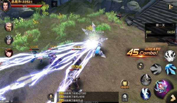 《拿下三国》采用市面上主流的虚拟摇杆+按键的组合操作模式,实战当中角色走位与技能释放一气呵成,几乎找不到任何打断战斗节奏的卡顿感和迟滞感。细腻的画面表现和舒适的音乐音效也为游戏战斗体验加分不少。