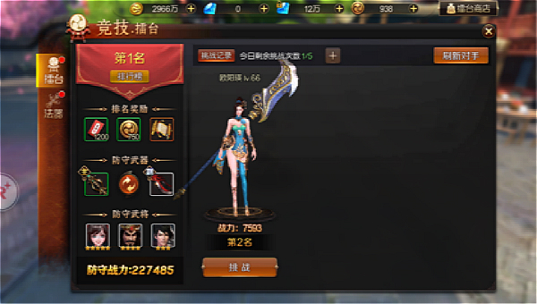在竞技玩法-擂台中,主公每日有5次挑战对手的机会,并与他们的AI角色进行战斗。若主公在本次挑战中获得胜利,则会与被挑战的主公互换名次,并获得胜利奖励;若挑战失败则会保留原先名次,获得失败奖励。挑战胜利可继续进行下一场的挑战,而挑战失败的主公则需要等待一定的时间后方可再次挑战。