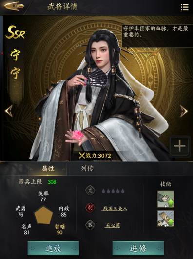 除了以上武将的基础属性之外,《霸王之业-战国野望》中还拥有丰富的武将缘分系统,通过解锁缘分可以获得攻击、防御、带兵、负重、速度等方面的提升,比如织田信长可以和归蝶解锁鹣鲽情深缘分,提高军团带兵数。对于对历史感兴趣的玩家,缘分系统还是相当有趣且实用的。