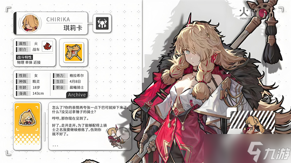 莉琪卡这个角色在火环游戏中的设定是一个比较傲娇的少女,娇小的身材却隐藏着极为蓬勃的爆发力,战斗中的她喜欢拿着一把巨大的锤子猛烈的对敌人进行近身攻击。