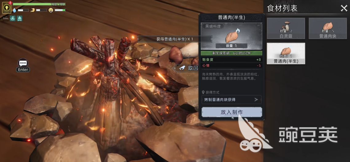 以上就是荒原曙光食物怎么做的流程分享,玩家解锁的食材内容越多,能制作的食物类型也就越多,想要制作高级食物的话,可以利用工具台来升级武器装备,武器升级了能捕获的猎物自然也就高级很多,不同的食物带来的饱腹感和血量恢复是不同的。