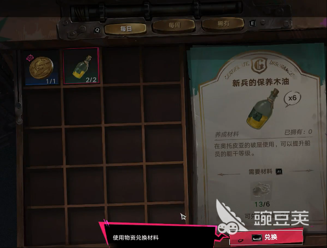 在这里提醒玩家,虽然可以通过委托寄回托卡皮亚,但是并不是寄回道具本身,而是通过兑换成物资的方式来寄回,道具价值越高,能兑换的物资越多,也越高级。每次寄回的时候只有12个格子,在兑换时具体的物资内容以上架商品为主,这些物资会以每日更新、每周的方式来更新,其中稀有的物资会有购买上线,建议优先兑换稀有类别的物资。