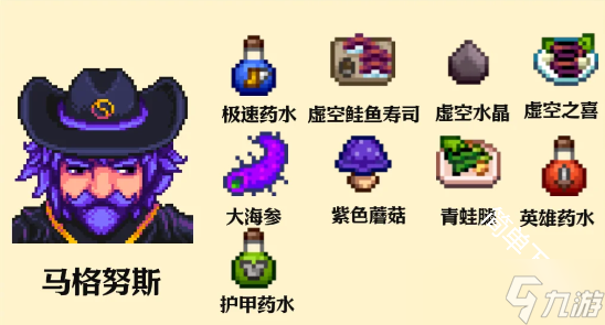 星露谷物语SVE中的人物角色有克莱尔、兰斯、索菲亚、马格努斯、奥利维亚、维克多、苏珊、摩根、莫里斯、马丁、马龙、斯佳丽、安迪、苹果、岗瑟,下文整理了他们各自喜爱的礼物内容详情大全!