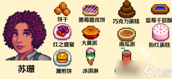 7、苏珊:饼干、黑莓脆皮饼、巧克力蛋糕、蓝莓千层酥、红之盛宴、大黄派、南瓜派、粉红蛋糕、薄煎饼、冰淇淋、蔓越莓糖果