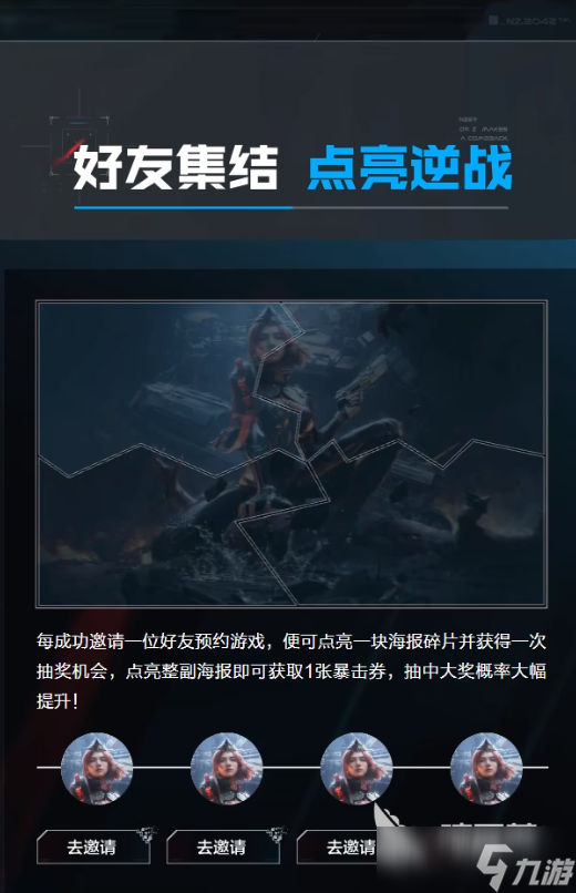 逆战未来预约奖励已经在上面分享出来了,除了预约奖励之外,还可以邀请其他的战友,这样也能获得角色皮肤或者是其他的高级礼包,可以叫上自己喜欢枪战对抗的玩家一起预约,这样上线之后就可以组队战斗,再次开启一场刺激的对抗。