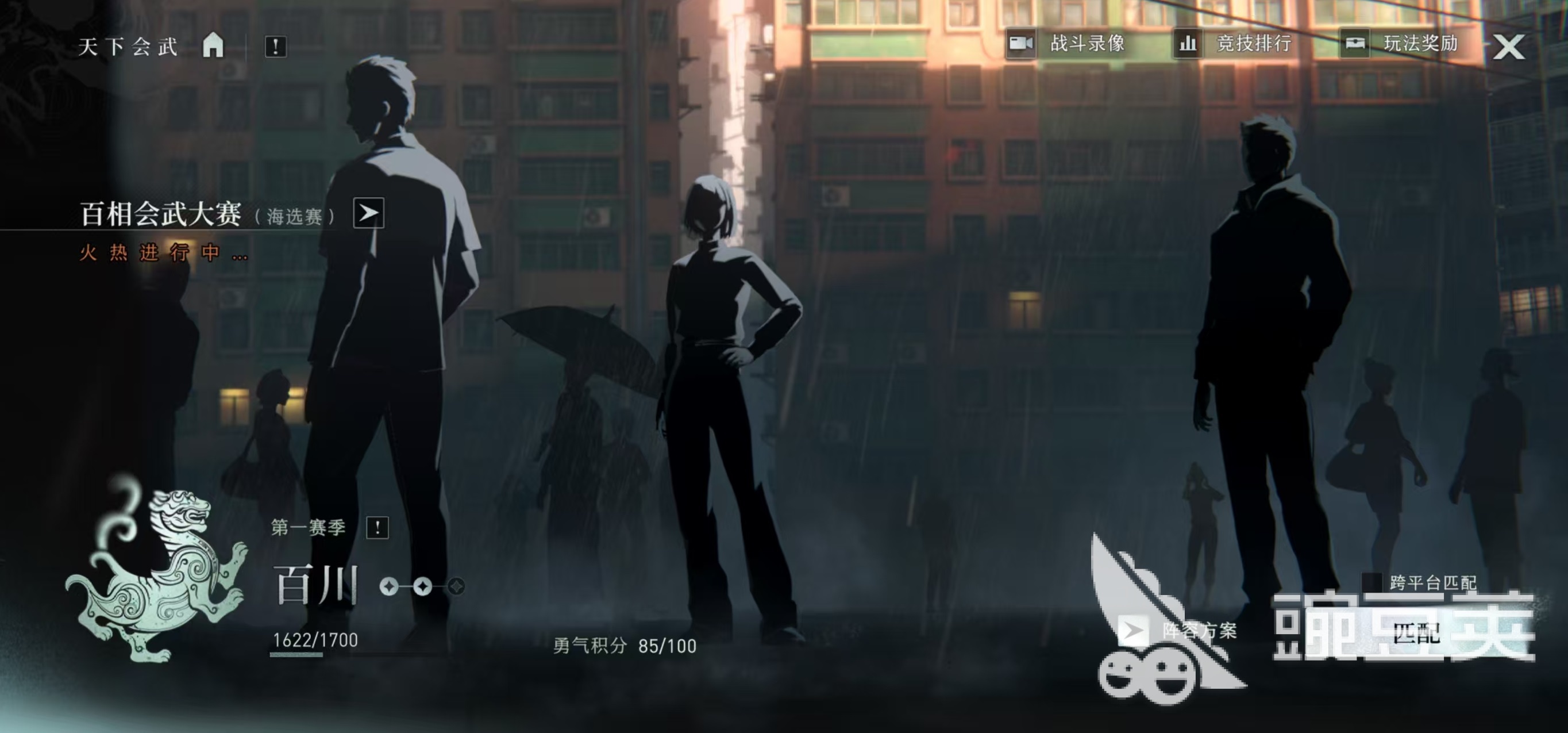异人之下手游中的竞技玩法非常丰富,主要有以下几类。第1个是天下会武,也就是游戏里的排位赛,这是整个游戏的核心竞技玩法,属于1V1的模式。玩家点击匹配后,就可以选择和其他人进行随机排位,然后进行Bo5模式的车轮赛制。对局开始前,需要选择3名角色,决定好出场顺序和携带的身外身技能。单局时长被控制在了90秒之内,率先击败对手的一方获得单场胜利。在单场倒计时归零时,血量高的一方获胜。