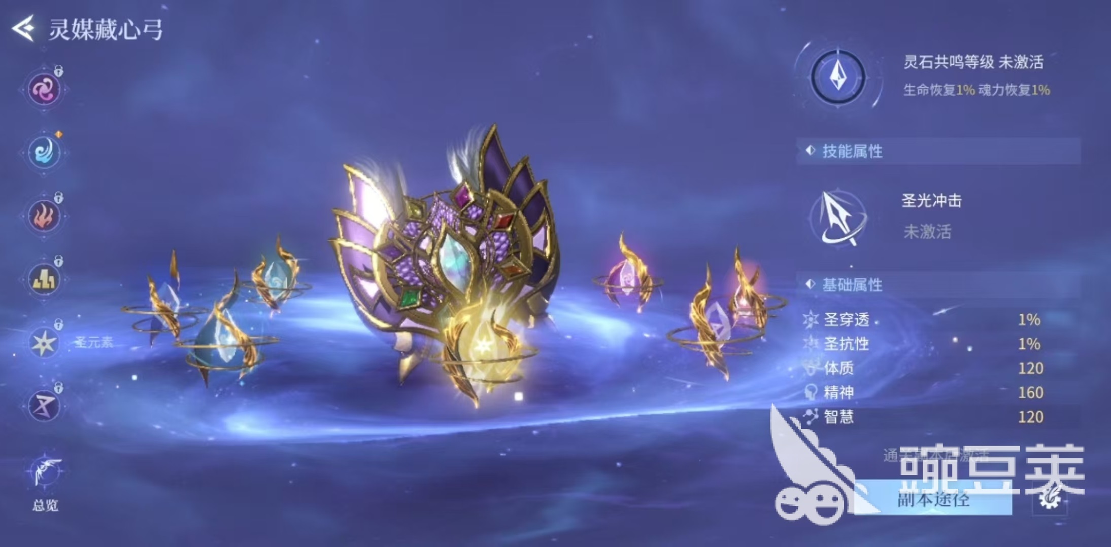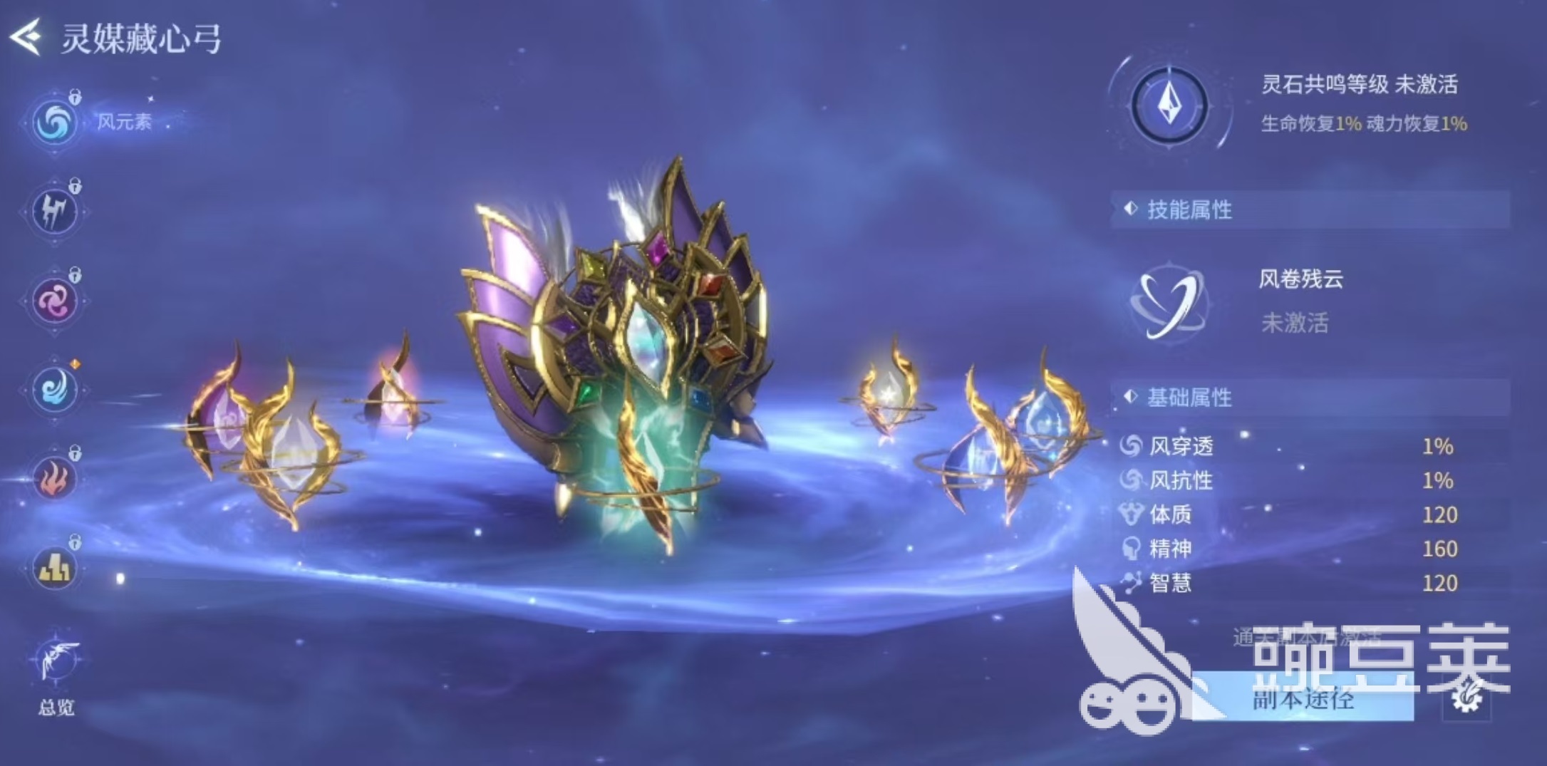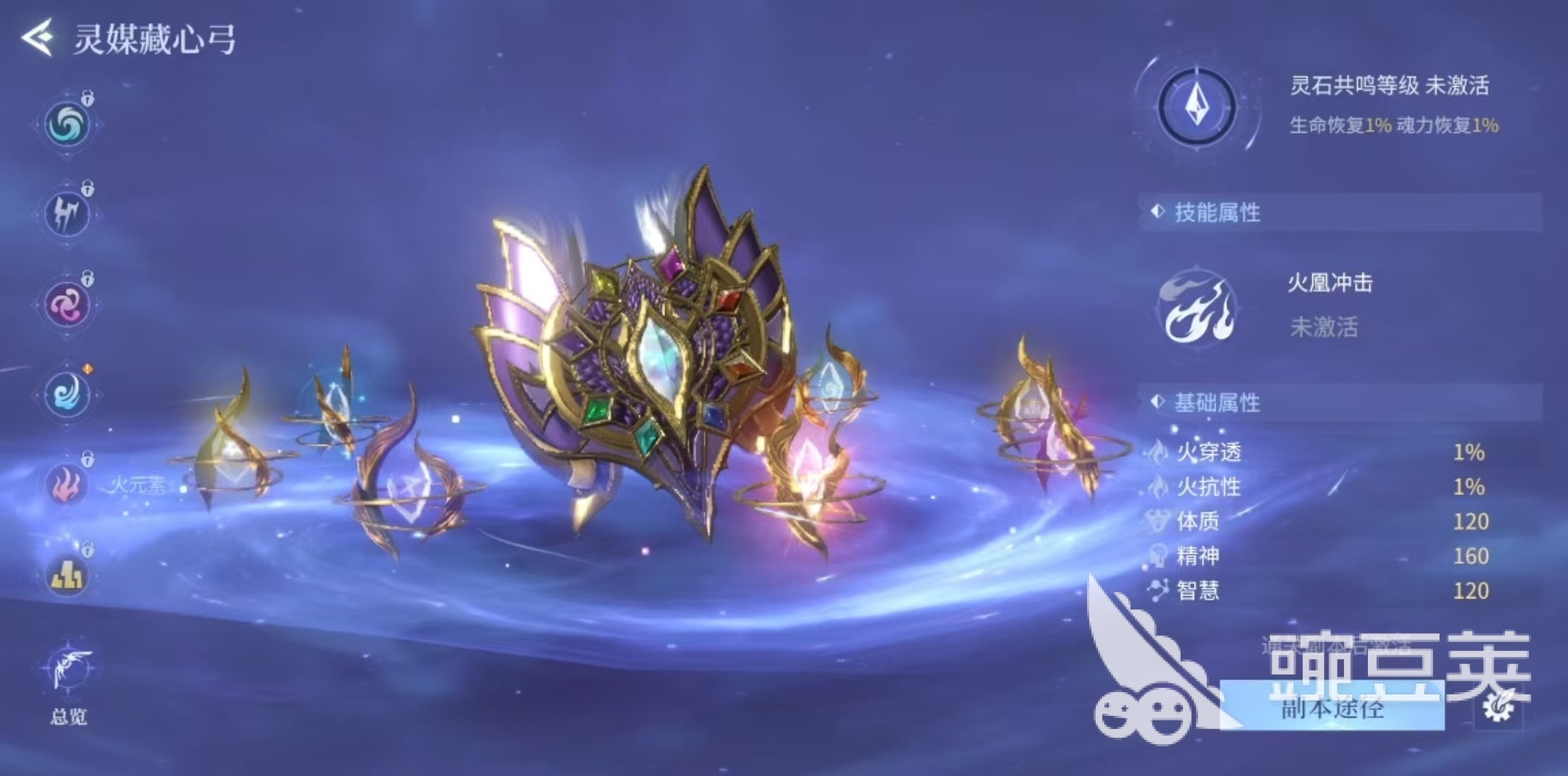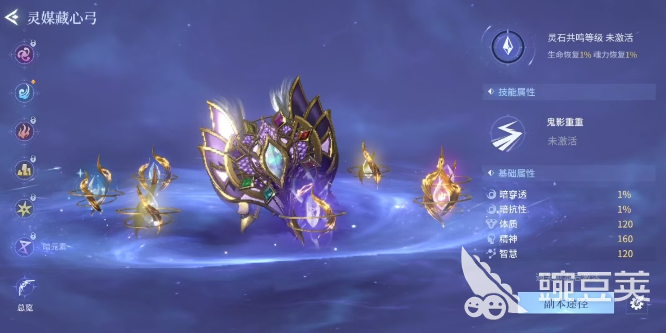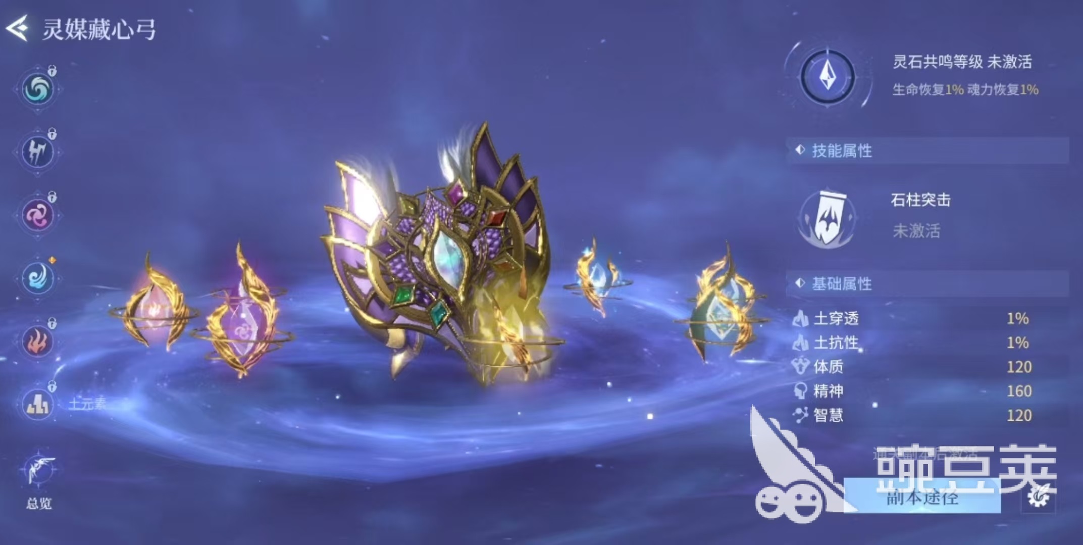 大家打开游戏主页面之后,在暗器的旁边就可以看到灵弓的选项,玩家需要通关指定的副本,才可以激活各个属性的灵弓。这个玩法的全称是灵媒藏心弓,一共有八种,分别对应着游戏中的七种属性,风、雷、水、火、土、毒、圣、暗。玩家可以通过刷对应副本的方式,将不同属性的灵弓激活,这样在对战中可以根据需要使用了。每种灵弓都有两种不同的效果,分别是战斗过程中使用出来造成伤害的技能效果,还有一种是蓄力之后射出对应的元素箭只。例如大家在探索过程中遇到的元素图腾,会受到相同元素和克制元素的影响,会影响元素印记的数量,这时就可以使用灵弓的不同元素来进行操作。