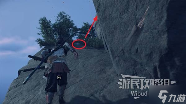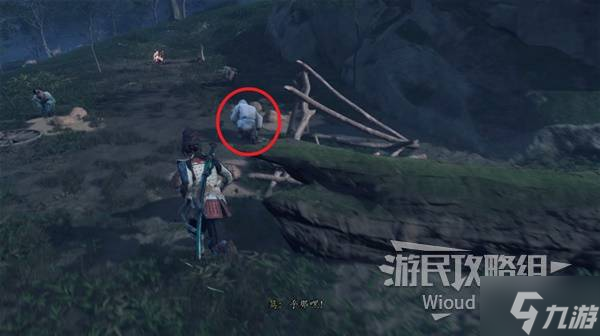 来到目的地和一个白发NPC互动,跟着NPC走到一个攀附点前,跟着白色印记往下爬。