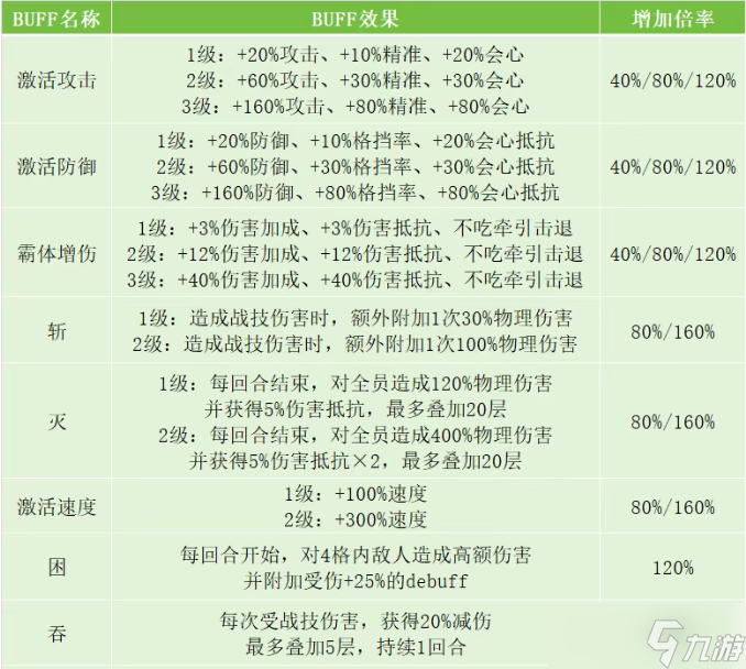 这些BUFF,我们首先要排除的就是“困、吞、助、灭”,这四个BUFF在长线战斗中极其强大。“斩”看似不强,但配合无限的多段技能输出爆表,同样不能点;
