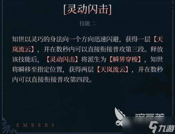 如果是命中的敌人身上带有封印效果的话,此时将击碎他身上的封印,获得一层封印值,如果是释放月灵散射的话,那么这个技能还会加上封印解放的效果,这个效果就是解放之后带来额外5次灵箭输出,在技能2上面,她有一个灵动闪击的能力,就是使用这个技化的时候,会迅速的闪避一下,然后获得一层天岚流云的增益,并且在后期的几秒之内直接衔接下一段普攻,释放了技能之后,灵动闪击将会变成派生的效果,带来瞬间穿梭的效果,然后知世就会得到一个指定位置的瞬移,再额外获取两层的天岚流云增益,在后面几秒之内可以衔接普攻第4段进行输出。