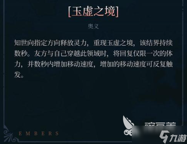 在她的大招上面叫做玉虚之境,使用这个大招的时候是需要灵力的,那么在消耗了灵力之后,就会出现一个境界,这个结界持续时间很长,主要是队友和知世自己进入这个领域里面的话,直接就会触发恢复的效果,并且再一次体力数值恢复,并且在后续几秒之内,她的移速也会得到一定的增强,且这个移动加速是可以反复触发的。