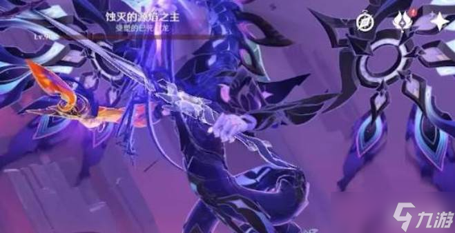 第三个招式是蚀灭的源焰之主翅膀经过短暂蓄力后向远处释放大量飞羽,被命中会受到少量深渊伤害,应对方式是看到翅膀蓄力后躲到它面前就行,这个招式躲避非常简单,就算被命中也不会吃到很多伤害。招式四是它会飞起斩击两次,第一次在近处用深渊剑斩击,第二次在远处用火元素剑大范围斩击,然后飞行释放深渊喷发。