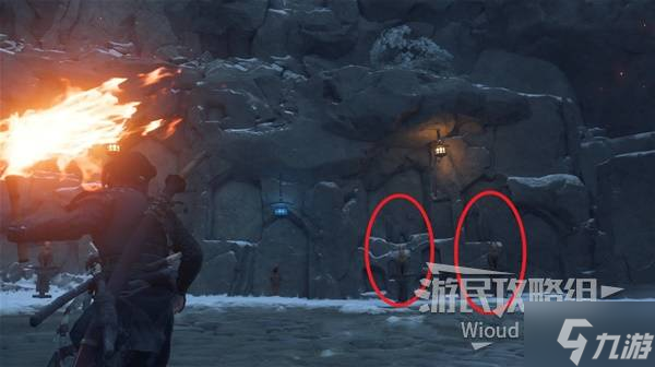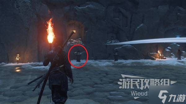 先把敌人全干掉,左侧拿火把点燃所有正上方有红色灯笼的灯。