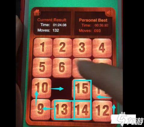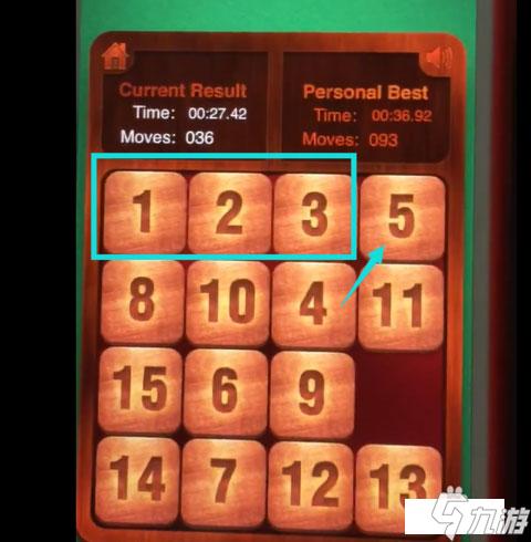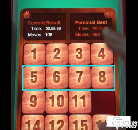 5、接着是第三行,因为需移动的数字又少了四个,所以此行很容易完成。改行排好后,如果没通关,需要排最后一行,可以看到较难操作。