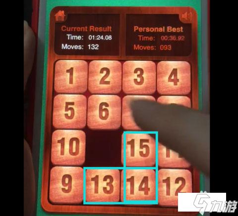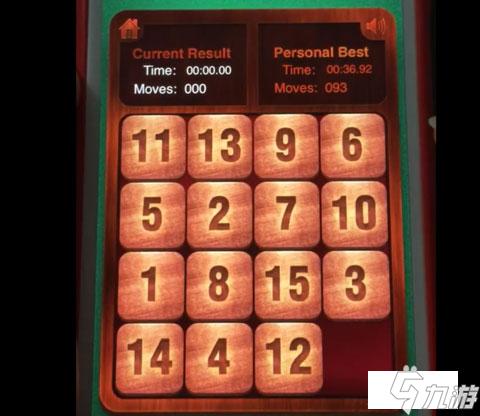 1、首先开始一局,此时界面右下角,会空出一格,作为移动空隙,需根据规则,从左上角由1开始,排列方块。
