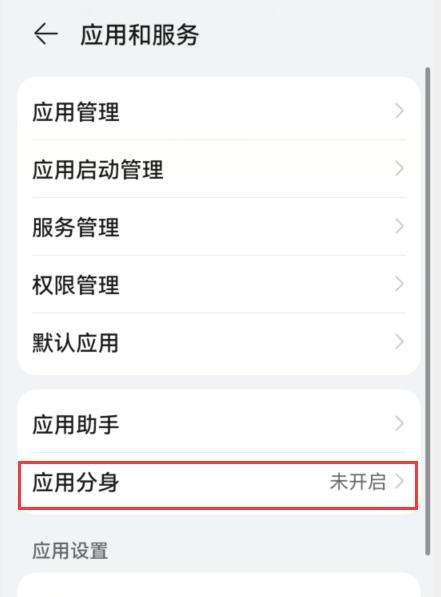 1. 打开手机设置,在“应用分身”选项下点击进入。