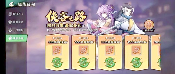 首先,充分利用每日签到和侠客之路,运气好的话,有机会获得一个极品的侠客盒子,其时效性长,为你的武侠之旅增添助力。