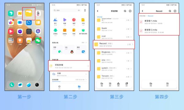 文件管理--手机存储/内部存储/所有文件--Recordings--Record文件夹。