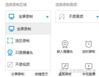2.选择录哪儿的声音,自己的就是麦克风,电脑的就是系统音;还可以选择特定的区域录制